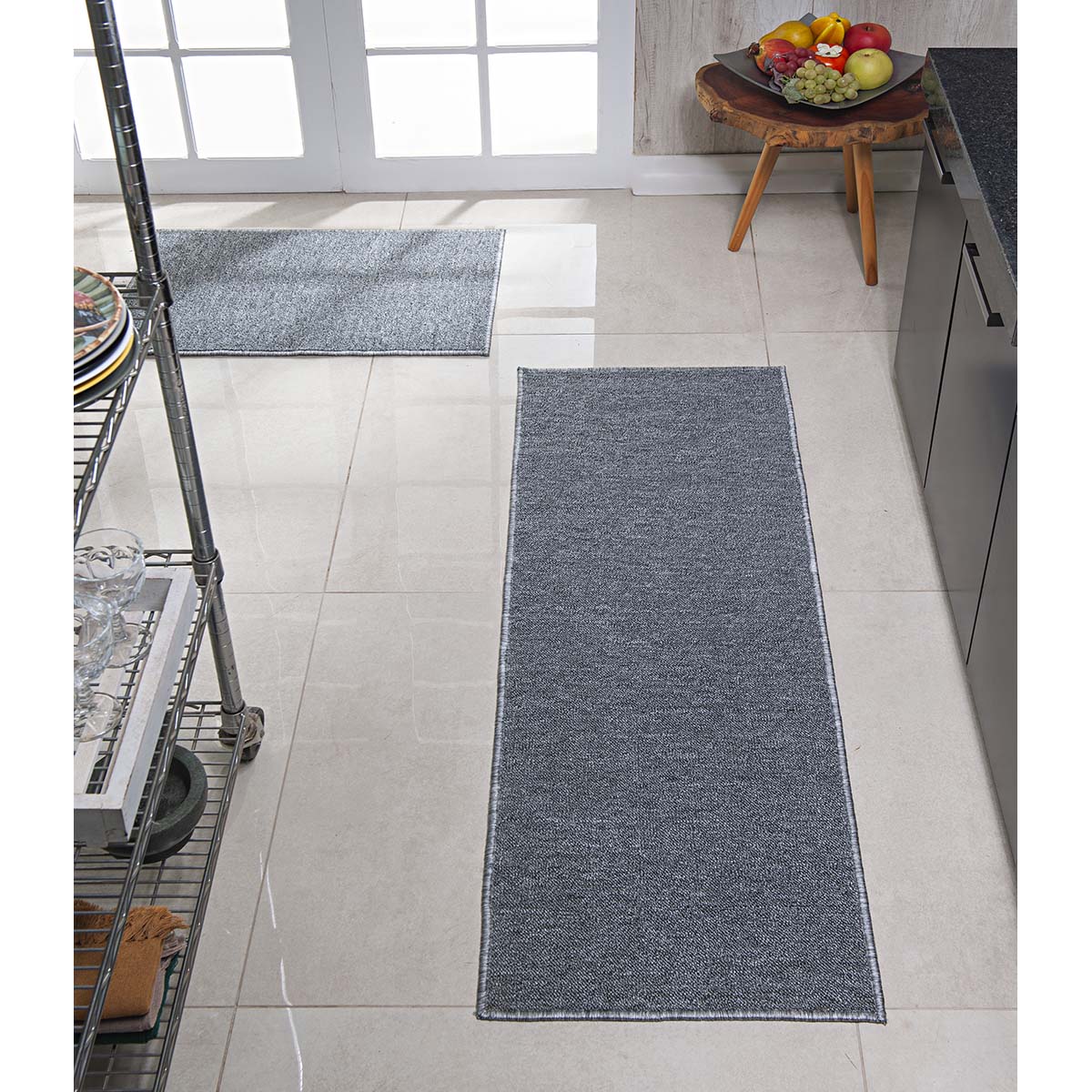 Produzidos com superfície 100% polipropileno, os tapetes possuem textura em bouclê de pelo baixo (4 mm), garantindo resistência, durabilidade e facilidade na limpeza — características essenciais para o dia a dia na cozinha. O material também apresenta excelente desempenho contra manchas e umidade, tornando o conjunto ideal para áreas de maior circulação.