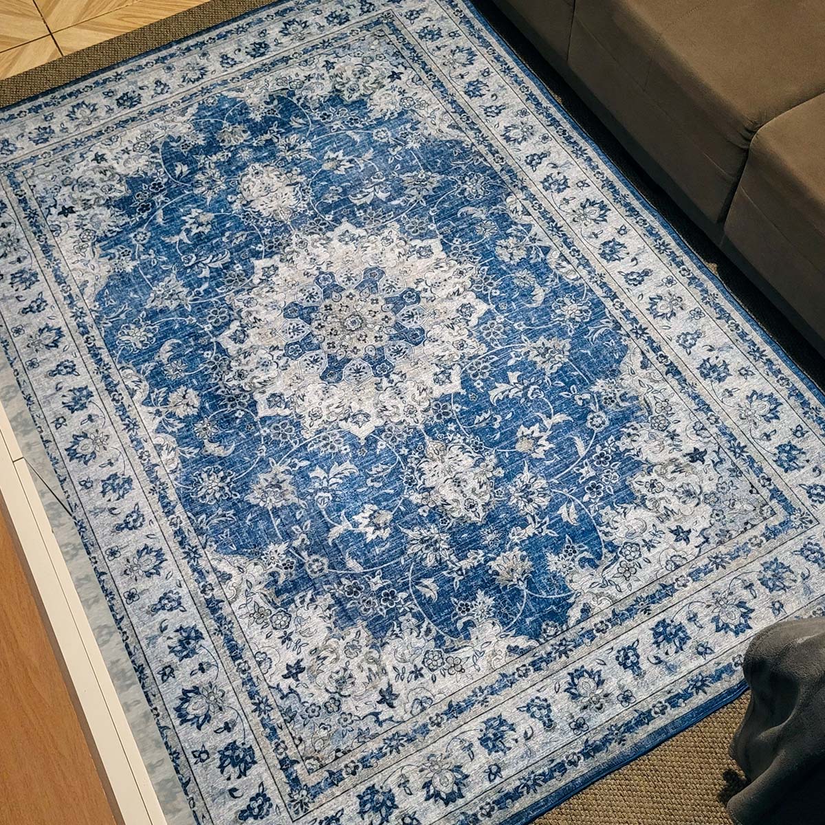 Produzido em 100% poliéster, o tapete possui toque suave e uma textura agradável, que proporciona aconchego e elegância ao ambiente. Seu design clássico e detalhado harmoniza com diversos estilos de decoração, do tradicional ao contemporâneo, tornando-se o destaque ideal para salas, quartos e escritórios.