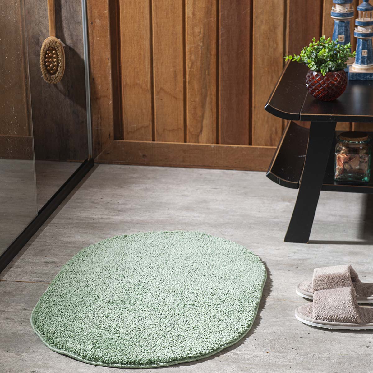 Tapete Banheiro Antiderrapante Cherry Oval Jade 0,50X0,70M