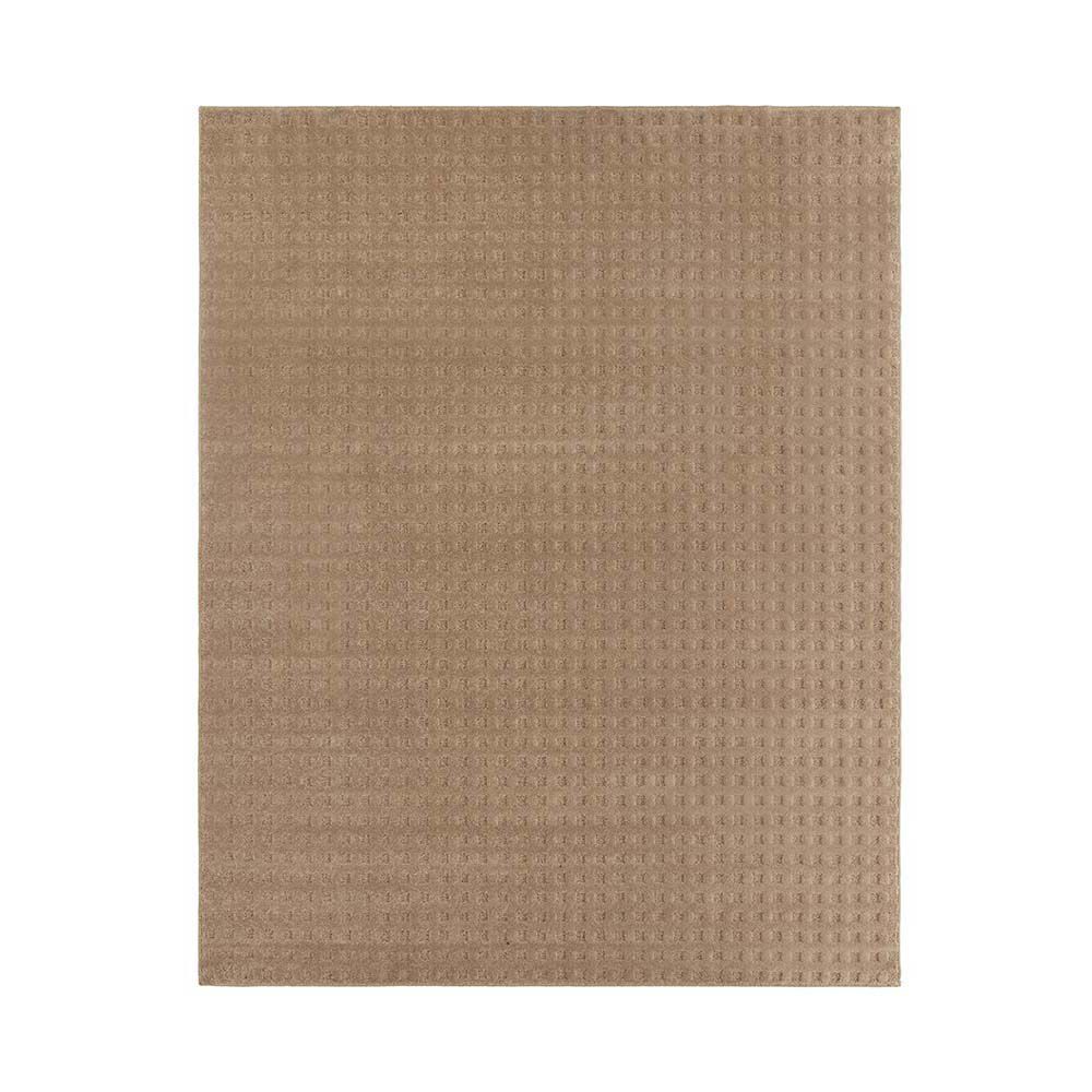 O tapete é composto por 100% de polipropileno, um material durável e resistente a manchas e umidade. A altura do pelo é de 12mm, proporcionando uma sensação suave e confortável ao toque, enquanto os detalhes em baixo relevo de 6mm adicionam textura e profundidade ao design.