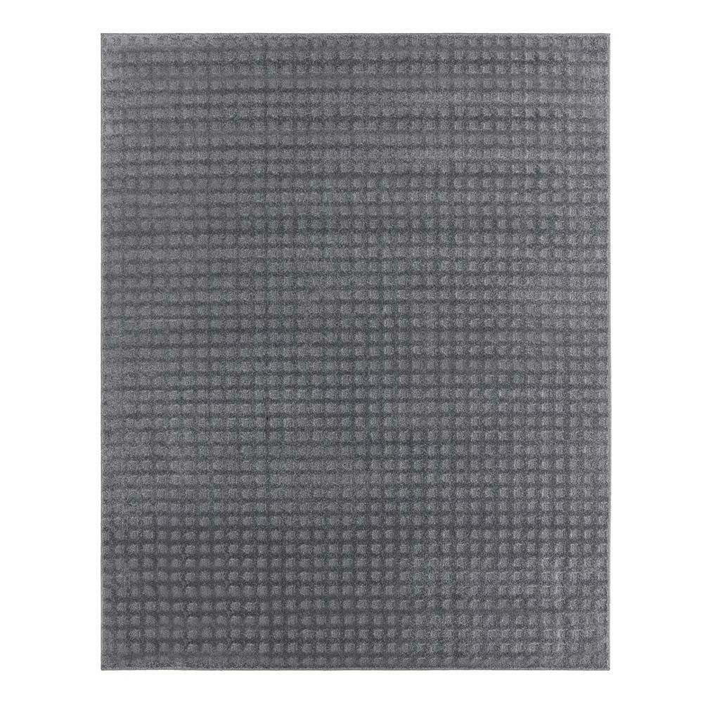 O tapete é composto por 100% de polipropileno, um material durável e resistente a manchas e umidade. A altura do pelo é de 12mm, proporcionando uma sensação suave e confortável ao toque, enquanto os detalhes em baixo relevo de 6mm adicionam textura e profundidade ao design.