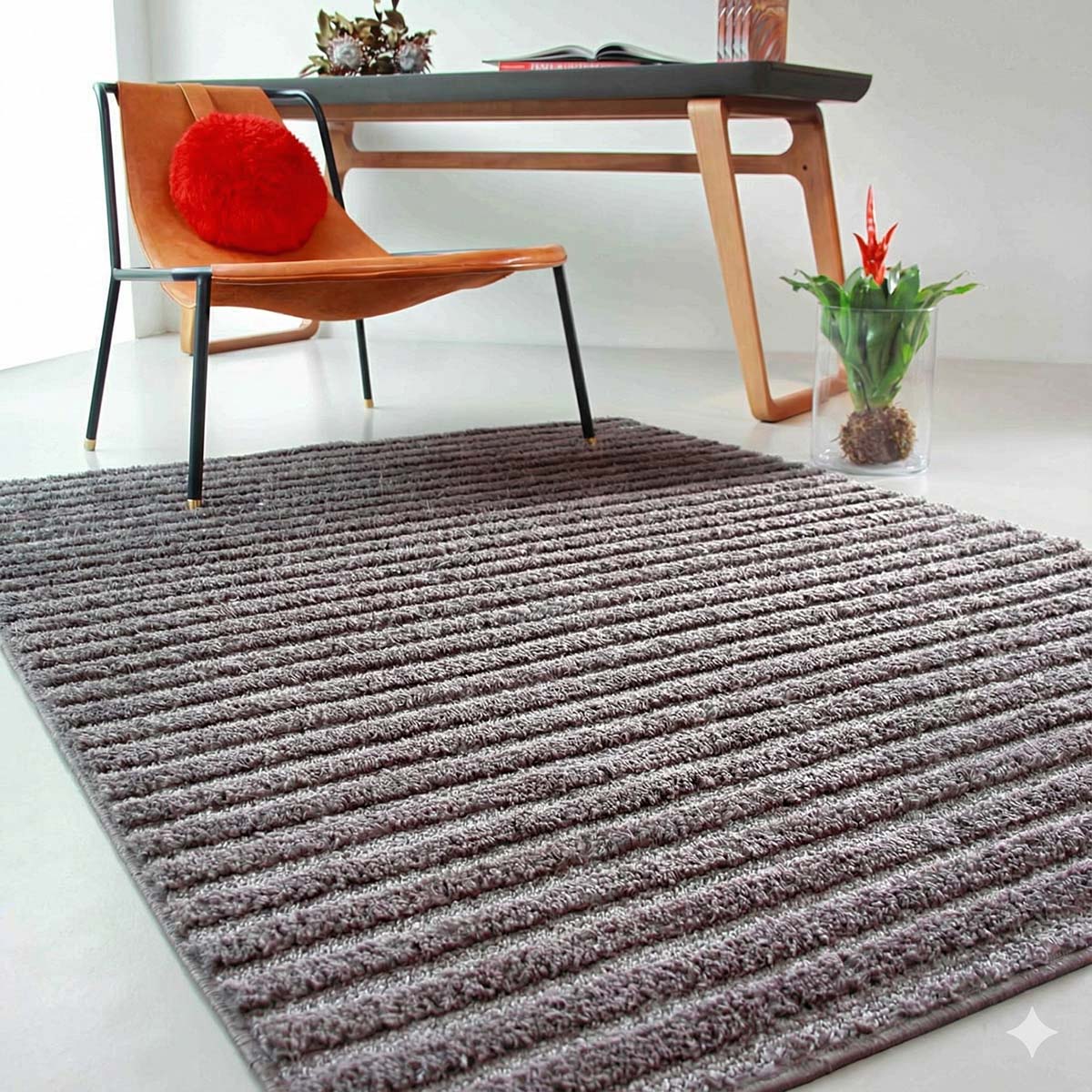 Fabricados com superfície 100% poliéster, os tapetes da Coleção Jazz oferecem um toque macio, agradável e visualmente sofisticado. A sensação de conforto é reforçada pelo pelo de 17 mm, que acrescenta volume e acolhimento ao ambiente sem perder a praticidade no dia a dia.